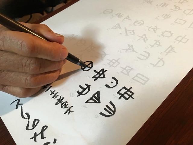 自身の小さな店「はつたもの」店内において、古代文字書道の会も開催。